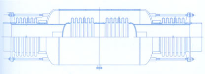 該膨脹節(jié)具有吸收內(nèi)壓推力的能力,且有良好的導(dǎo)向性,產(chǎn)品剛度小外形尺寸小等特點(diǎn)。